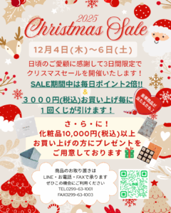 当店では12月4日(木)~6日(土)の3日間クリスマスセールも開催中🎄